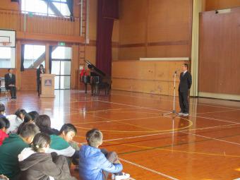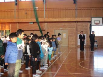 第3学期始業式を行いました。冬休みを楽しく過ごし、新しい年、新しい学期への期待にどの子も目がキラキラ輝いています。代表児童が冬休みの思い出や3学期がんばりたいことを発表しました。漢字、算数、ドッチボール大会、自主学習、復習などをがんばりたい、と、しっかりと発表することができました。続いて校長より、今年一年も、チーム楡小として、自由闊達で、知行合一、そして和気藹々、とやりましょう、と話がありました。どの子も一年の始まりをしっかりと受け止めていました。