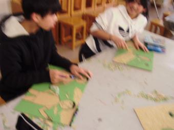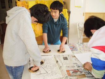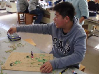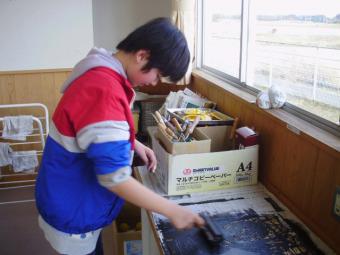 6年生が図工の時間に版画制作を行いました。みんなで協力しながら、楽しそうに、真剣に、一枚一枚、気持ちを込めてインクを塗り、刷っていました。