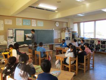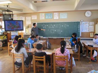 3年生が外国語活動を行いました。ALTの先生と一緒に、久しぶりにジョリーフォニックスをやりましたが、みんなきちんと発音を覚えていて、改めて身体化させる効果を感じました。その後、形についての英語を学びました。いろいろな形の呼び方を覚えることで、子ども達はさらに英語を身近に感じられたようでした。