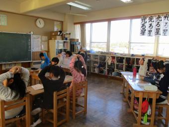 昼休み。校舎内外のあちこちで、子ども達はそれぞれ楽しい時間を過ごしています。図書室では多読賞の子に、図書委員会お手製のしおりが配られていました。もらった子はとても嬉しそうです。図書委員の4年生が本の貸し出しを行っています。校庭では、サッカーに興じる子たち。女の子が男の子のキーパーめがけてシュートしています。先生とリフティング対決をしています。高学年から低学年交ざりあって追いかけっこをしています。鉄棒、ブランコ、雲梯、ジャングルジム。チャイムが鳴ると一斉に昇降口に向かって走り出しました。