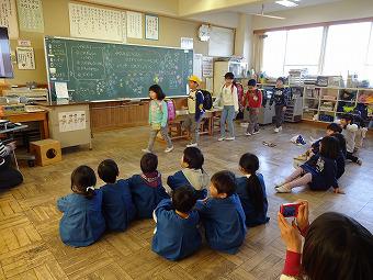 南保育園の年長園児が来校し、1,2年生と楽しく交流しました。自己紹介の後、1年生が小学校の生活を演技を交えながら紹介しました。その後体育館に移動し、2年生が自作のおもちゃで保育園児をもてなし、最後に歌をプレゼントしました。保育園児も楽しそうでしたが、1、2年生も、頼れるお兄ちゃん、お姉ちゃんとしての役割をとても楽しそうに行っていました。
