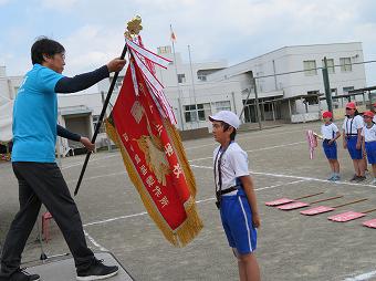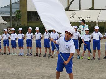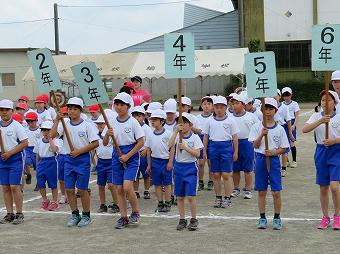 業間に運動会全体練習を行いました。入場から開会式の流れの練習です。高学年を中心に、どの子も一生懸命、自分の役割を果たしていました。