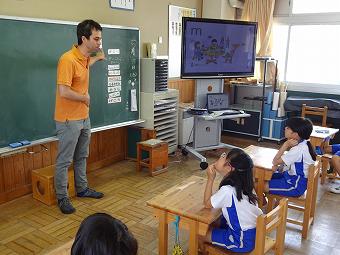 2年生が外国語活動を行いました。ALTの先生と一緒にあいさつを練習したり、アルファベトの発音を練習したりしました。どの子もとても楽しそうに英語に親しんでいました。