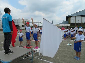業間の運動会練習は全校による応援合戦でした。赤白団長がリーダーシップを取り、どちらの組も、白熱した応援を繰り広げました。本番がとても楽しみです。
