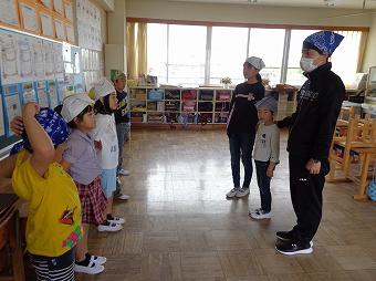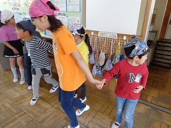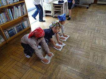 1年生が今日から清掃に参加しました。1年生は、迎えに来たなかよし班班長に清掃場所まで連れていってもらい、優しく清掃のやり方を教えてもらいました。どの1年生も、一生懸命清掃に取り組んでいました。