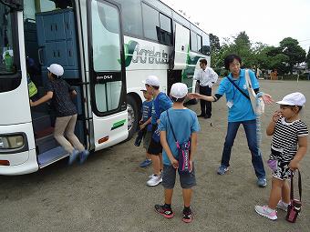 きらら学級が合同宿泊自然体験学習に出発しました。今日の予定はなかま作りゲーム、バナナケーキ作り、川遊び、そして夜のキャンドルファイヤーです。どの子もこれからの学習の期待から笑顔満面で出発しました。