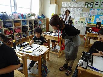 3年生が書写の学習を行いました。今回は2名の学習ボランティアさんが子供たちの支援をしてくださいました。「おれ」の書き方を学んだ後、それぞれ半紙に練習をしました。どの子も、ボランティアの方に教わりながら真剣に学んでいました。