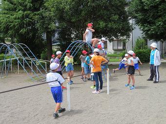高学年が企画して、業間の時間に、なかよし班共遊を行いました。三本線、けいどろ、ドッジボールなど、校庭、体育館に分かれて、どの班も高学年が低学年の面倒を見ながら、みんなで楽しく、協力し合って、和気あいあいと遊びました。