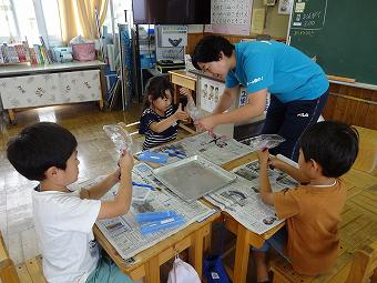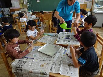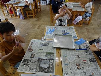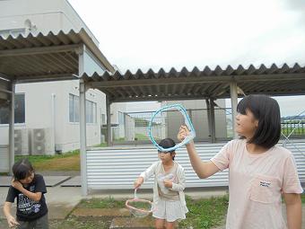 手作り科学クラブで、大きなシャボン玉作りを行いました。どの子も、大きく長持ちするシャボン玉はどうすればできるか、を考えながら、何度も何度も大空にシャボン玉を飛ばしていました。