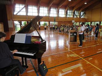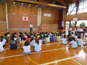 2学期始業式を行いました。代表児童からは、夏休みの思い出や2学期がんばりたいことの発表がありました。自主学習、話を聞くこと、字をきれいに書くこと、など、それぞれがんばりたいことを、しっかりと発表しました。校長からは「自分を好き」になり「人の役に立つこと」をすれば「幸せ」になること、だから2学期は、みんなで「幸せの鐘=ハッピーチャイム」を鳴らしていこう、との話がありました。学習指導主任からは、「目標をもつことの大切さ」について、児童指導主任からは「あいさつ・かかと・時間」をこれからもしっかりやっていこうということと、2学期重点目標「廊下・階段の歩き方をきちんとしていこう」という話がありました。どの子も真剣に話を聞いていました。みんなで2学期も素晴らしい学期にしていこうという気持ちの溢れた式でした。