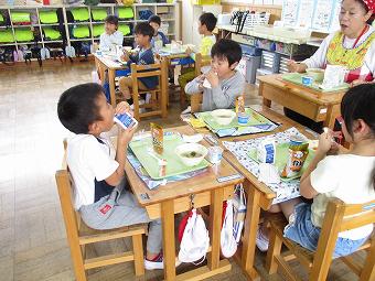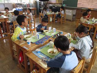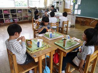 台風19号に関しましては、幸いにも学校施設、通学路等ともに大きな被害はなく、子供達は元気に登校しています。本日は以前より計画されていた防災給食を実施しました。実際の避難を想定して、防災食である袋入りのカレーを、常温のまま袋から食べる体験や、牛乳をストローなしで飲む体験をしました。どの学年も意図をしっかりと理解した上で、楽しく会食できました。