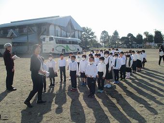 今日は鹿沼市合同音楽会の日です。楡木小は、今年度から全児童が参加します。合唱曲は「君の笑顔が好きだから」です。先陣として低学年児童が8時30分に出発しました。みんなとてもよい笑顔を浮かべています。