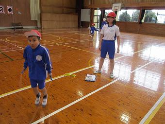 1年生と6年生が合同体育でなわとびの学習を行いました。1年生にとっては、教えてもらえることによって、6年生にとっては、アドバイスしたりお世話したりすることによって、本校で育成すべき資質・能力、自尊感情や自己有用感、学び合いなどを伸ばすことをねらいとしたピアサポート学習です。6年生はタブレットで1年生のなわとびの様子を録画してアドバイスをしたり、模範跳びをしたりしていました。1年生も楽しそうに、素直に6年生のアドバイスを聞きながら、一生懸命練習していました。