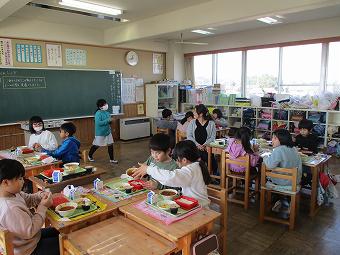 本校では、毎日給食ボランティアの方が給食の配膳を行ってくださっています。お陰で、子供たち、職員は安心して授業を行うことができます。日頃の感謝の想いを込めて、毎年、この時期に給食ボランティアの方をお迎えして、給食試食会を催しています。今日は第一日目ということで、3年生の教室で試食会を行いました。いつもお世話になっている給食ボランティアの方に、3年生も感謝の想いを伝えることができました。