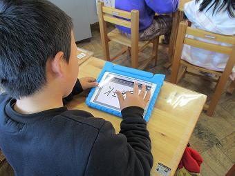 4年生が総合の時間にタブレットを使って授業を行いました。今回は、タブレットに慣れながら、自分なりのストーリーを作って、みんなを笑顔にすることをねらいとしています。どの子も、初めてにもかかわらず、どんどん操作に慣れ、終わる頃には、思い思いのストーリーを作っていました。