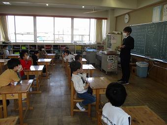 3年生のクラスでは、毎週木曜日、新採指導教員という立場の先生がやってきます。その日は、担任と2人体制で学級運営を行います。朝、放送で全校生に紹介し、その後、クラスで3年生と対面しました。