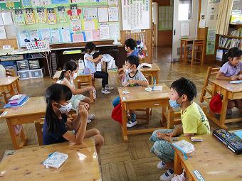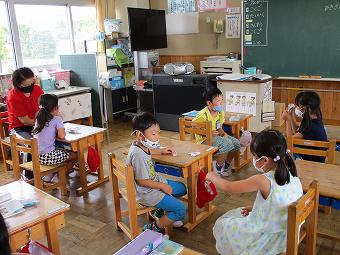 1年生が算数で計算カードでの学習を行いました。どの子も、意欲的に学習していました。