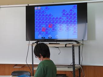 ICTクラブで、前回に引き続き、ビスケットを行いました。ビスケットとは、ビジュアル型プログラミング教材です。今回は、シューティングゲームをプログラミングしました。どの子も想像力を働かせて、いろいろなプログラミングに挑戦し、楽しいゲームを作っていました。