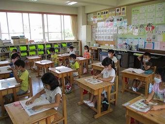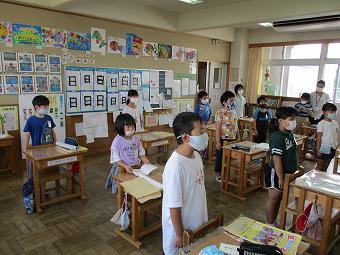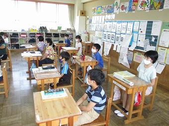 今日から2学期が始まりました。どの子も元気に登校し、二週間ぶりの友だちと楽しそうに交流していました。始業式は、各教室で放送を聴く形式を行いました。どの学年もしっかりと話を聴いていました。