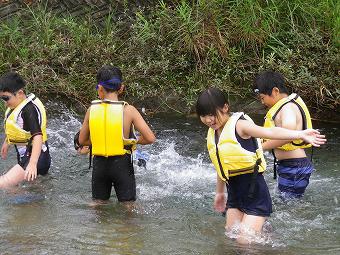 4年生が南押原小学校と合同自然体験学習を行いました。今年度は残念ながら日帰りですが、午前中は川遊びを楽しみました。昼食をはさんで午後は、工作です。どの子も笑顔いっぱいで活動していました。