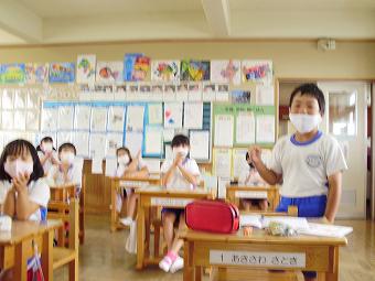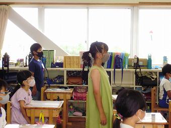 今日は登校中、一瞬大雨が降りました。びしょぬれになってしまった子供たちもいて、その子たちはすぐ体育着に着替えました。濡れた洋服は廊下で乾かしていますので、帰りまでにはもとの服に戻れることでしょう。