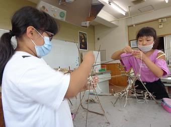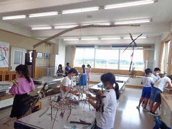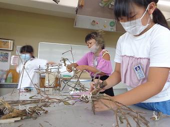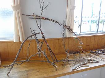4年生が図工で「みんなでどんどんむすんでつないで」の学習をしました。自分で集めてきた小枝をひもで結んでいく創作活動です。どの子も意欲的に自分のアイディアを形にしていました。