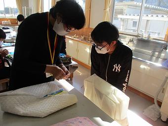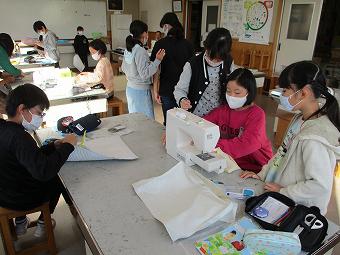 5年生が家庭科でナップザックつくりを行いました。ミシンにも慣れ始め、細かいところまで自分でできるようになりました。どの子も完成がとても楽しみのようです。