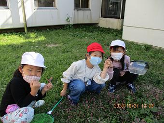 1年生が生活科で虫探しを行いました。どの子も夢中になって秋の虫を探していました。