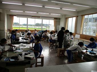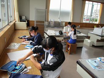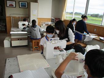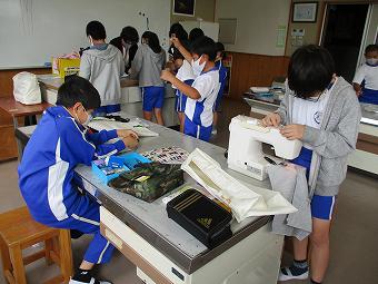 5年生が家庭科でミシンを使ってナップザックづくりを行いました。ホランティアの方にも入っていただき、ミシンの使い方などを教わりました。どの子も意欲的にナップザックづくりを行っていました。