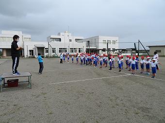 運動会の業間練習を行いました。どの子も目的意識をもって一生懸命取り組んでいました。また大学生の教育支援ボランティアが今日から毎週火曜日本校に来てくれることになリ全校生に紹介しました。これからよろしくお願いします。