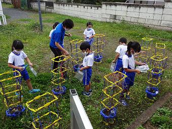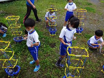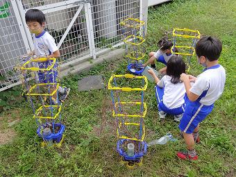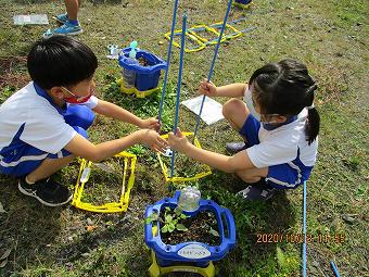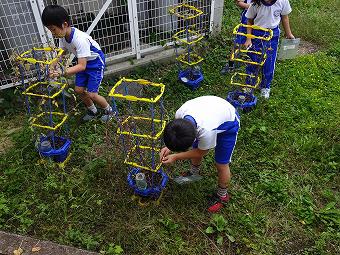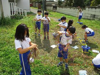 1年生が生活科であさがおの支柱を外しました。1年間丹精込めて育てたあさがおですが、種は次の1年生に贈ることになっています。どの子も名残惜しそうに自分のあさがおの支柱を片付けていました。