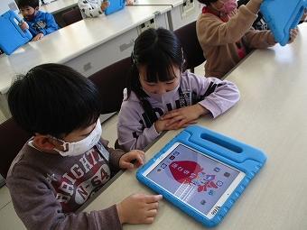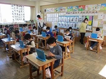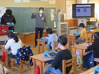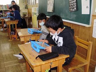 1・2年生がタブレットを操作する学習を行いました。3月までには一人一台のタブレットが導入しれます。今回は2年生が1年生にタブレットの操作や、オクリンクというソフトの使い方などを教えました。教えたり、教わったりすることで、互いに信頼関係をさらに強くしていました。