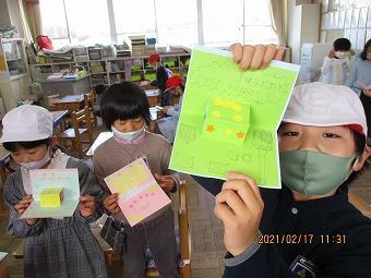 1年生と6年生が、卒業をお祝いを兼ねて、お楽しみ会を開きました。自分たちで企画した「だるまさんがころんだ」、「三本線」を6年生は1年生を思いやりながら、1年生は6年生を尊敬しながら、お互い楽しい時間を共有しました。最後には、6年生が素晴らしい大繩跳びを1年生に披露したり、1年生が心を込めて作ったプレゼントを6年生へ卒業祝いとして渡したりしました。6年生の笑顔、1年生の笑顔がとても印象的なひとときでした。