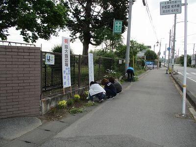 整備していただいた花壇に1年生がアサガオの種をまきました。これから毎日世話をしながら成長を観察していきます。花がたくさん咲くのが楽しみです。