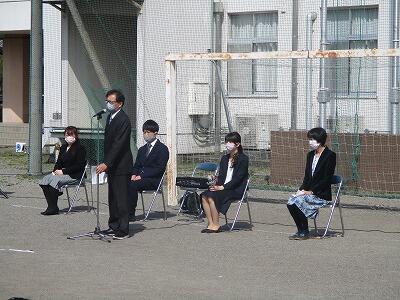今年度の異動により転出される4名の先生方とのお別れの式、離任式を行いました。