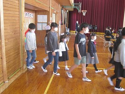 地震から火災が起こった設定で避難訓練を行いました。今回は1年生が入学して初めてということもあって避難経路の確認が一番の目的でしたが、全員避難まで1分57秒。指示に従って素早く避難することができました。よかったと思います。