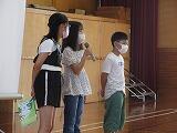 2学期より転入生が2名あり全児童数が60名となりました。それぞれの学年が夏休み楽しかったことや2学期頑張りたいことの発表がありました。勉強やスポーツ、健康に気を付けたり、体力づくりをしたいなど頑張ることの発表がたくさんありました。