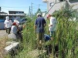 小さな生き物についての学習です。校庭の池の水を取り、顕微鏡で観察しています。