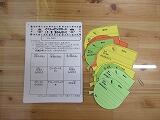 「いろいろもよう」の学習です。色水の中に洗剤を入れてシャボン玉にし、紙にうつしながら模様を作ります。間違えて色水を飲んでしまわないよう緊張しながら真剣に学習していました。