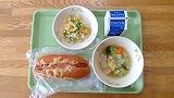 本日の給食の献立は、チーズホットドック、牛乳、コーンサラダ、ポトフです。