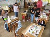 「うきうきボックス」の工作です。家から持ってきたいろいろな紙の箱を飾って楽しく変身させる学習です。「何を作ろうかな」とても楽しそうです。
