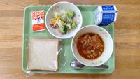 本日の給食の献立は、食パン、牛乳、花野菜サラダ、チリコンカンです。