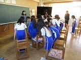 楽しくソーイングで生活に役立つものを作る学習です。ナップザックの製作に取り組んでいました。5年生の時の経験を活かし、一人一人頑張って印付けやしつけをしていました。