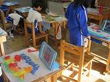 「のりのりおはながみで」の学習です。違う形や色のお花紙を重ねて自分だけの世界を作っていました。素敵な作品ができそうですね。