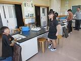 今日は6年生です。理科の「見えなくなった金属のゆくえ」の学習でした。前時の学習で薄い塩酸に鉄やアルミニウムがとけた液体の少量を熱して、蒸発皿に残ったものを調べる実験です。みんな意欲的に学習に臨んでいました。