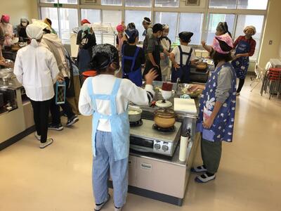 今日の調理実習はごはん、お味噌汁を作りました。前回の調理実験がとても生きているようで、手際よく活動していました。