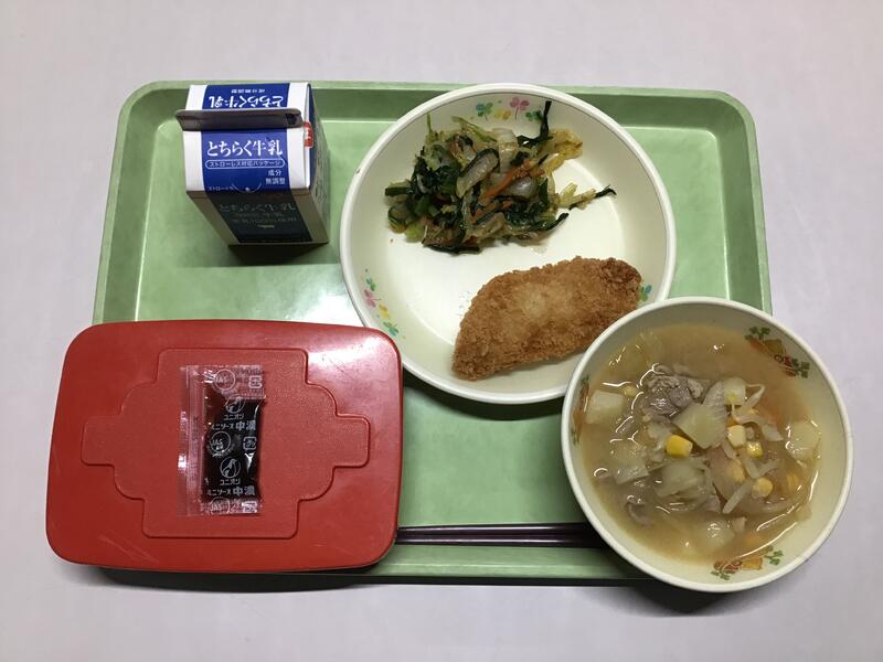 ごはん 牛乳 さわらフライ にらとはくさいのおかかあえ どさんこじる