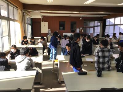 今日の業間は通学班ごとの会議でした。班ごとによかったところ、改善するべきところなどを上学年の児童を中心に話し合いました。これからますます寒くなりますが、両手をきちんと出して安全最優先で登下校してほしいです。
