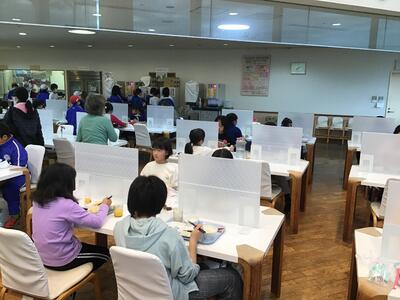 臨海自然教室での初めての食事です。今年は、コロナ禍前の「バイキング」が復活しました。自分が食べられる量をとって、美味しくいただきました。黙食もしっかり守っています。カレーを中心とした、美味しいメニューでした。