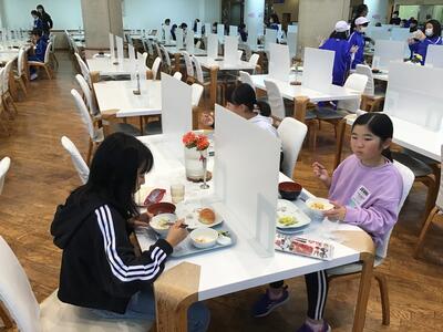 その後、早くも夕食です。ボリューム満点でしたが、1日中体を動かした5年生は、モリモリ食べていました。